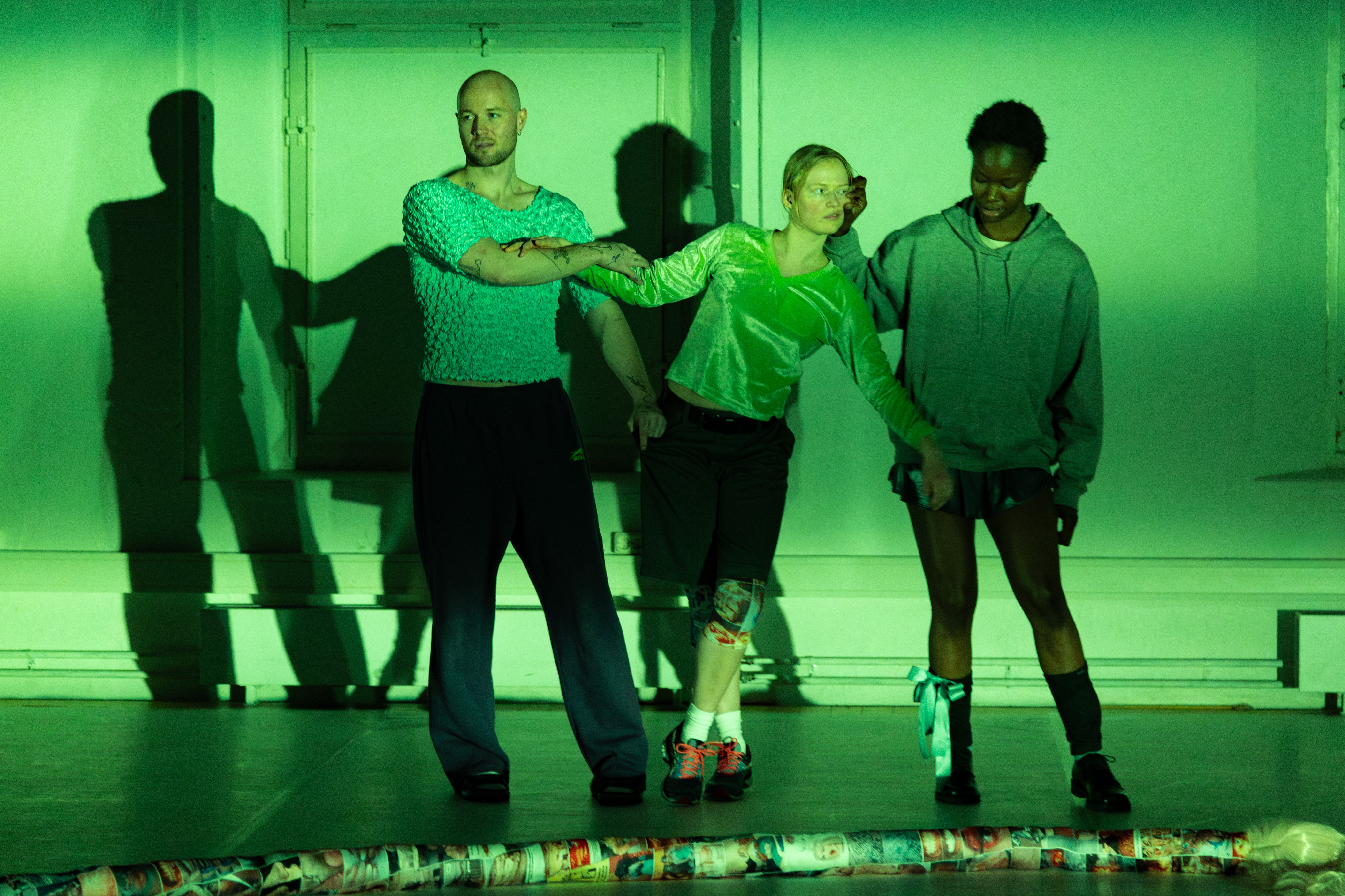 Dim deals with anesthesia – anesthesia as a consequence of the times we live in, and as a tool to be able to deal with these times. Dim is a work for three dancers. A realm of numbness steers their relations and pathways, where care, violence, indifference, boundlessness and desire quiver in an uneven path.